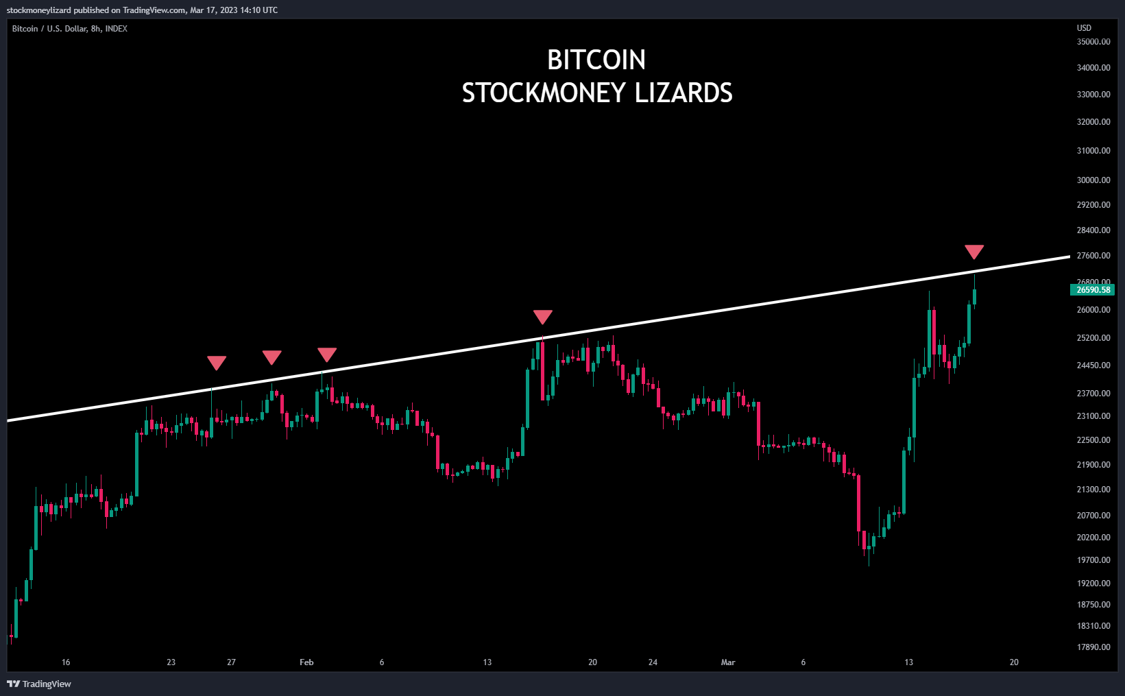 “Bitcoin is trying to fly – this resistance line will break sooner or later,” popular analytics resource Stockmoney Lizards summarized about a chart showing a rising resistance trend line for BTC/USD.