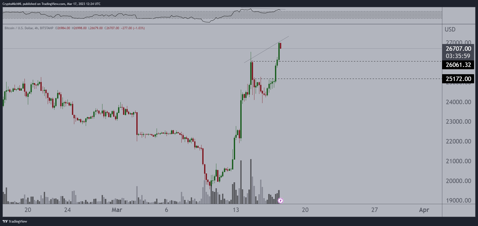 At the time of writing, the pair circled $26,500 with volatility ongoing after the Wall Street open.
