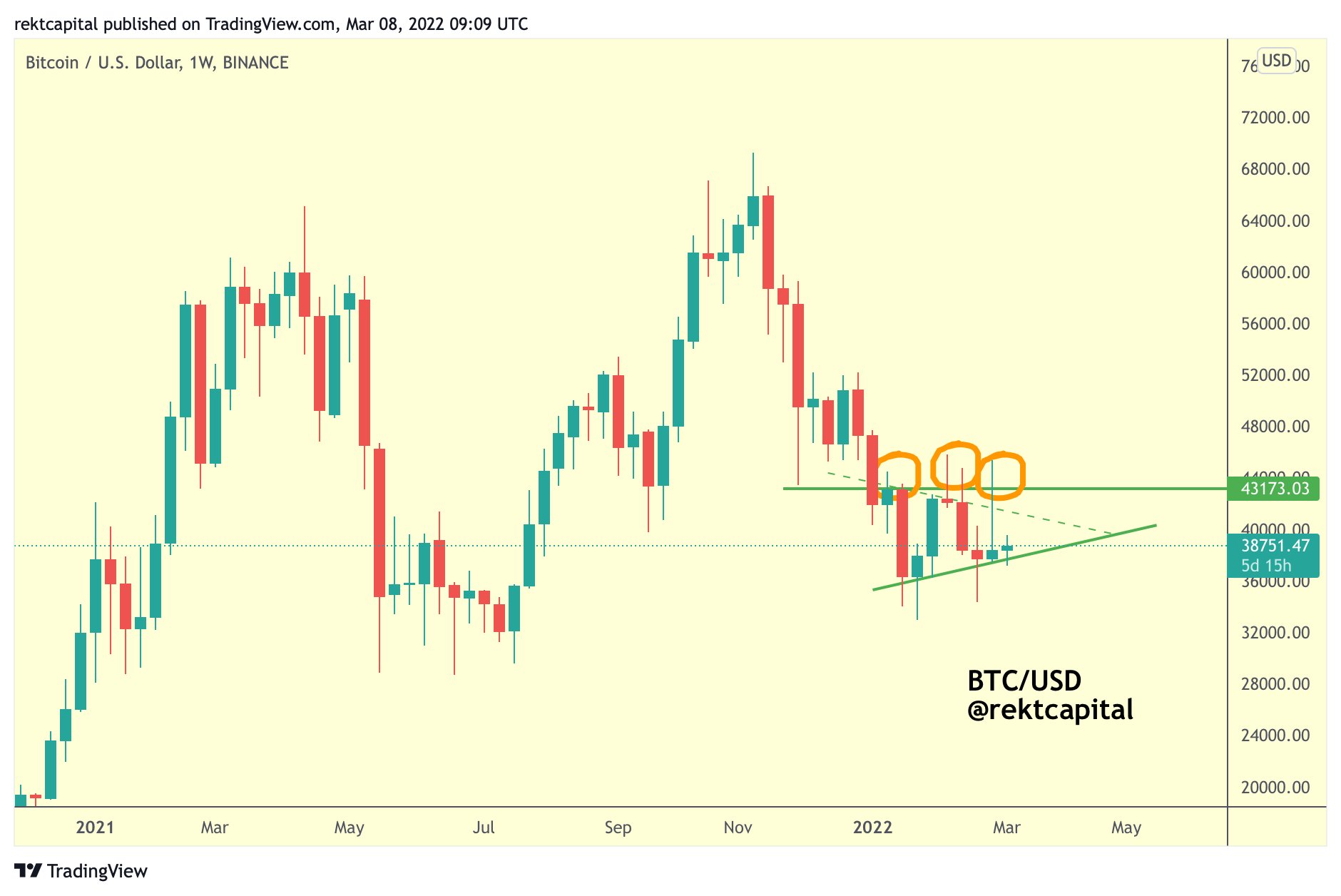 https://images.cointelegraph.com/images/840_aHR0cHM6Ly9zMy5jb2ludGVsZWdyYXBoLmNvbS91cGxvYWRzLzIwMjItMDMvYTk1MjIyMDAtODc2OS00Y2E4LWEzYTktZjBhM2U3M2JmYTI3LmpwZw==.jpgBitcoin (BTC) looks poised to test the $43,000 level in March, according to a technical setup shared by Rekt Capital, a pseudonymous market analyst.