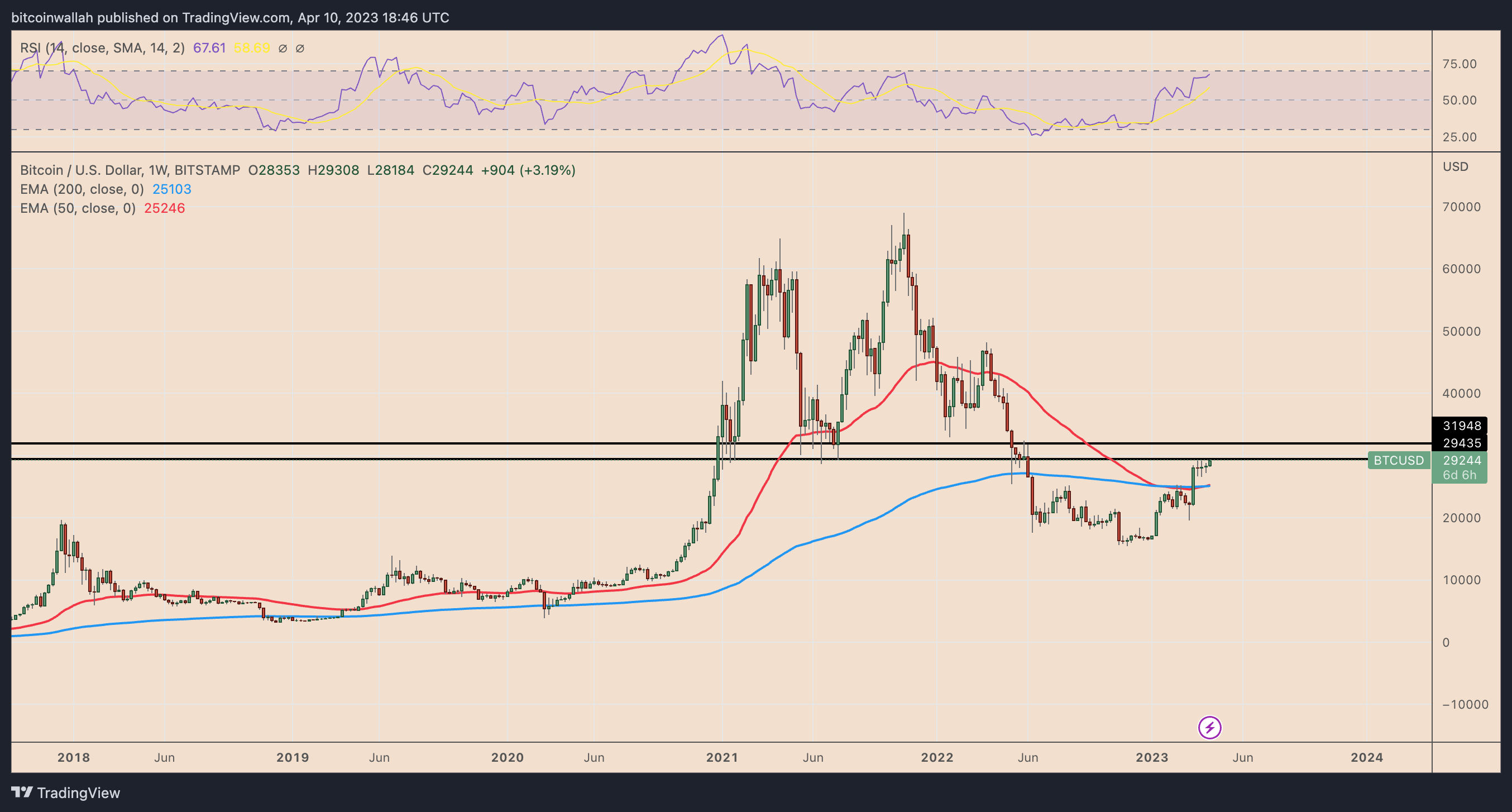 Meanwhile, from a technical analysis standpoint, Bitcoin must close above its weekly resistance range — defined by the $29,500 to $32,000 area — to eye a run-up toward $40,000.