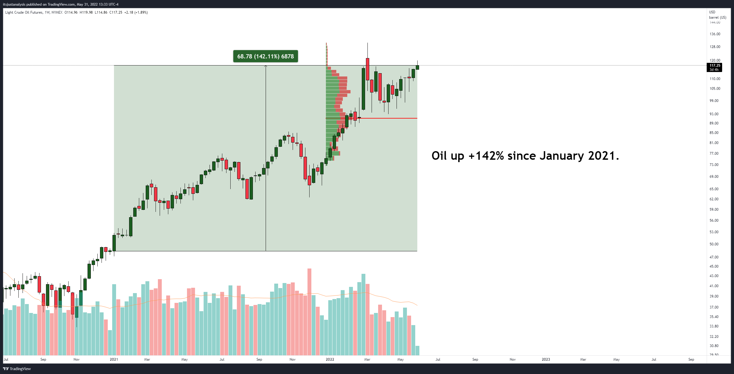Oil futures (NYMEX: CL) continue to rise and are now trading at levels not seen since July 2008. There are broad concerns by traders and investors that oil may spike toward $150 per barrel once China ends its COVID shutdown. When that occurs, demand will most certainly return and further impact oil.
