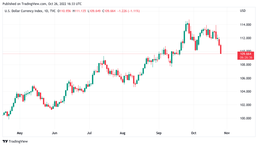 The spotlight was instead on gold, which also saw a relief rally as the U.S. dollar struggled. The U.S. dollar index (DXY) circled its lowest levels since Sep. 20.