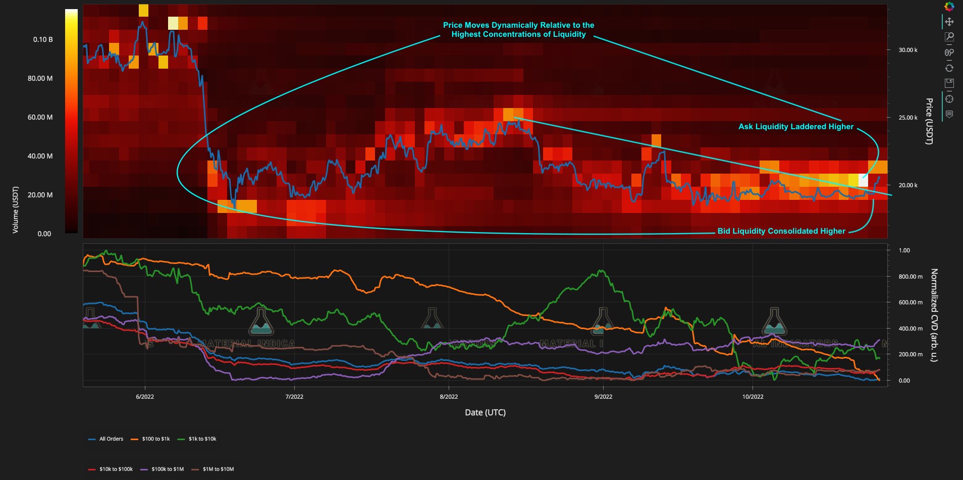 Tracking the order book on largest global exchange Binance, analytics platform Material Indicators noted ask liquidity was moving higher.
