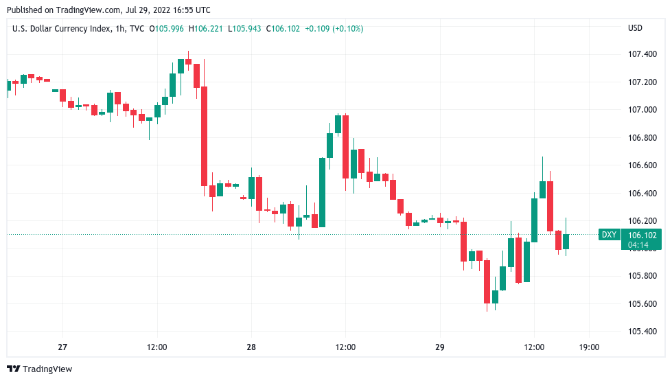 The U.S. dollar index (DXY) continued higher during the Wall Street trading, passing 106 after falling to its lowest levels since July 5.