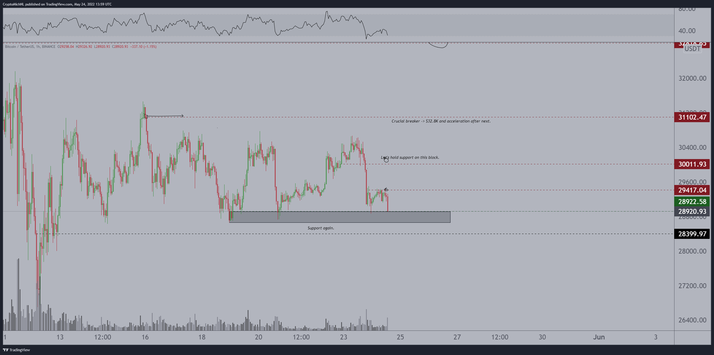 “Grey zone has been supported the past week, but a sweep and test around $28.3Kish isn’t a bad thing either. Would be massive for longs.”