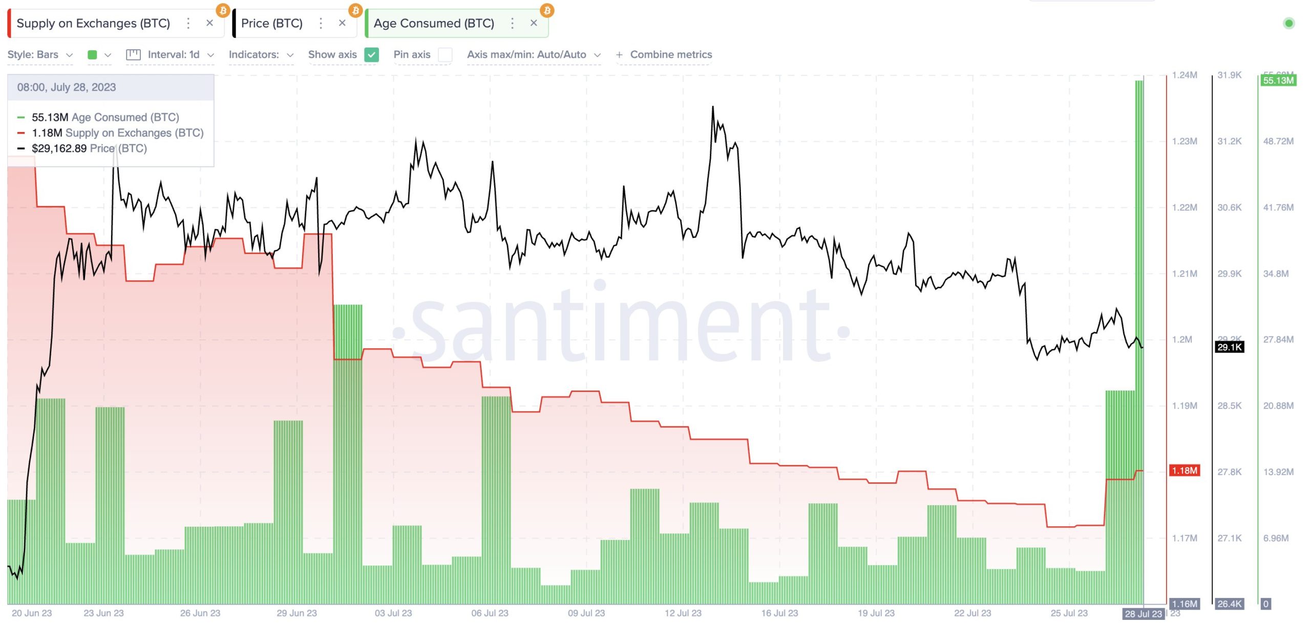 “Yesterday, the most amount of Bitcoin went back onto exchanges since the SVB collapse in March,” he commented on July 28.