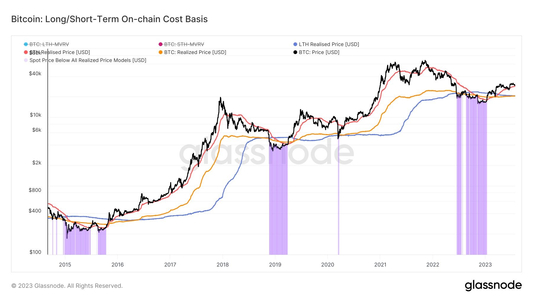 “Price in both the 2015 and 2019 bear markets used short-term holder realized price as support, 2023 is exactly the same, testing it three times so far $28,241.”