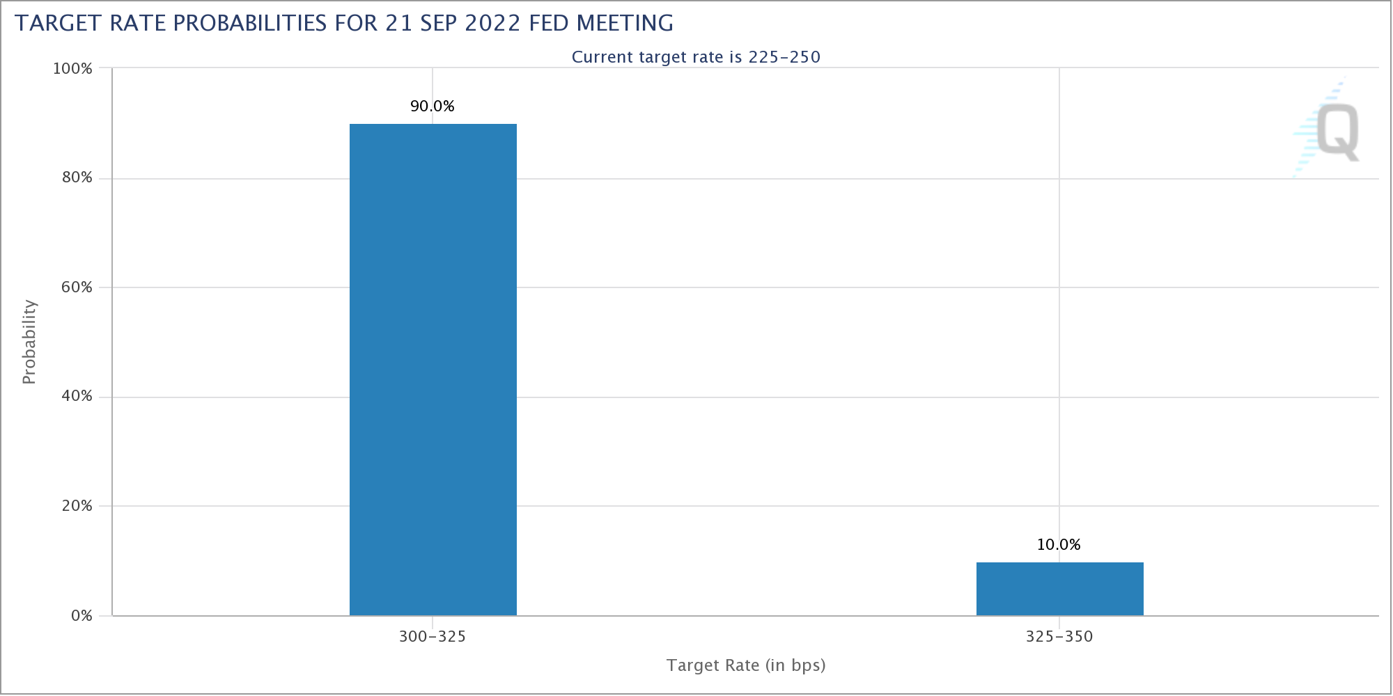 US CPI for August YoY coming in above expectations at 8.3% (expected 8.1%) but lower than in July with 8.5%.