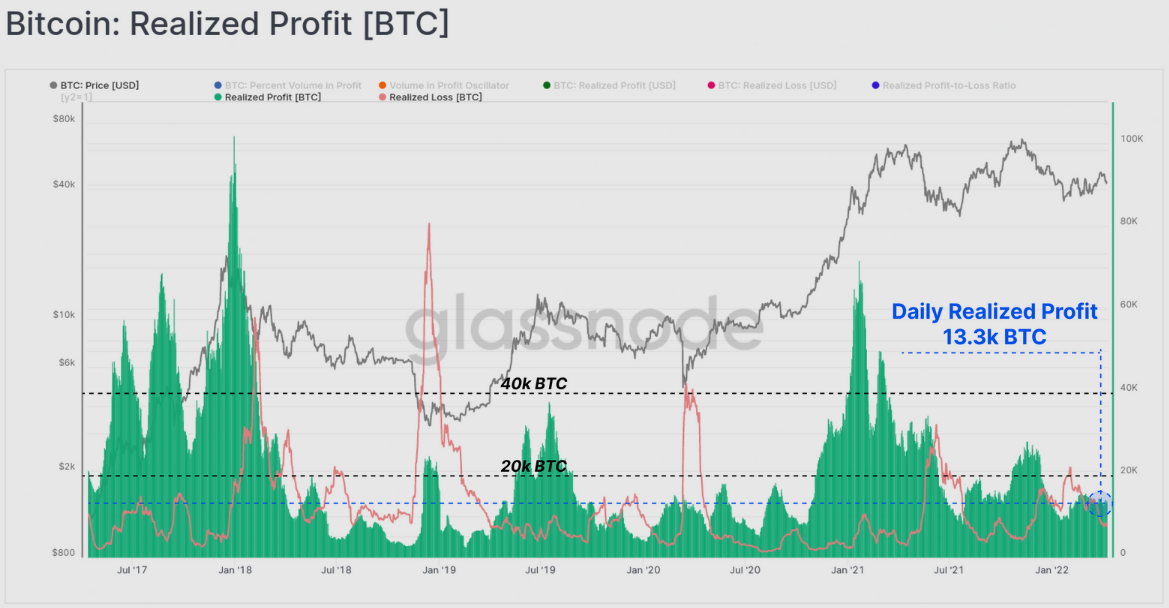 According to Glassnode, “the market has seen around 13,300 BTC in profits realized each day since mid-February” and while this value is not “historically extreme,” it does appear to “be providing sufficient headwinds to prices.”