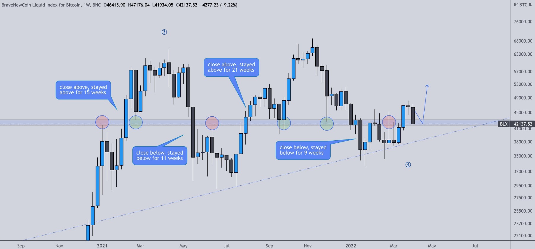 The current price action for Bitcoin is largely seen as a retest of a major support and resistance (S/R) zone according to crypto analyst and pseudonymous Twitter user ‘Credible Crypto’, who posted the following chart outlining the multiple retests of this level going back to 2020.