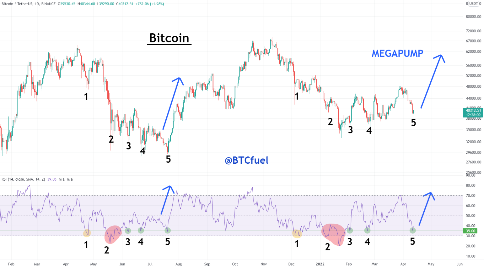 “When looking at the RSI, the 2022 Bitcoin correction is very similar to 2021. Strong BULLISH move imminent.”
