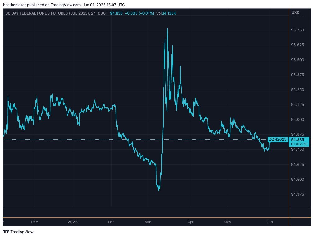 This is the lowest level federal funds futures had reached since early March, just before the banking crisis unfolded.