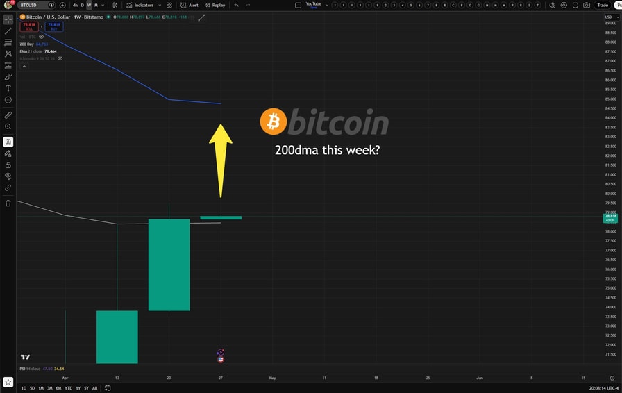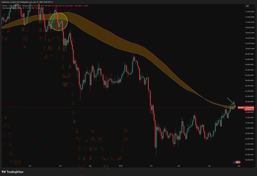 “While 80k is acting as a resistance right now, if we flip the band to support, it would point to a major macro-bullish shift.”