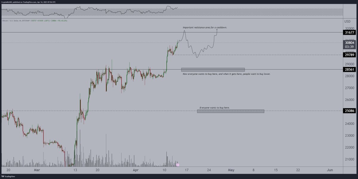 “I’ve marked $31.7-32K as important resistance point. However, $25K was the level everyone wanted to buy. This will probably shift to $28.5K, and then nobody buys. I’d prefer to focus on $29.7K.”