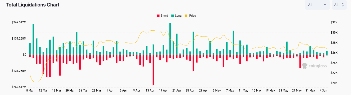Data from monitoring resource CoinGlass meanwhile showed liquidations more impacting longs for June 5, with cross-crypto position losses totaling $33 million at the time of writing.