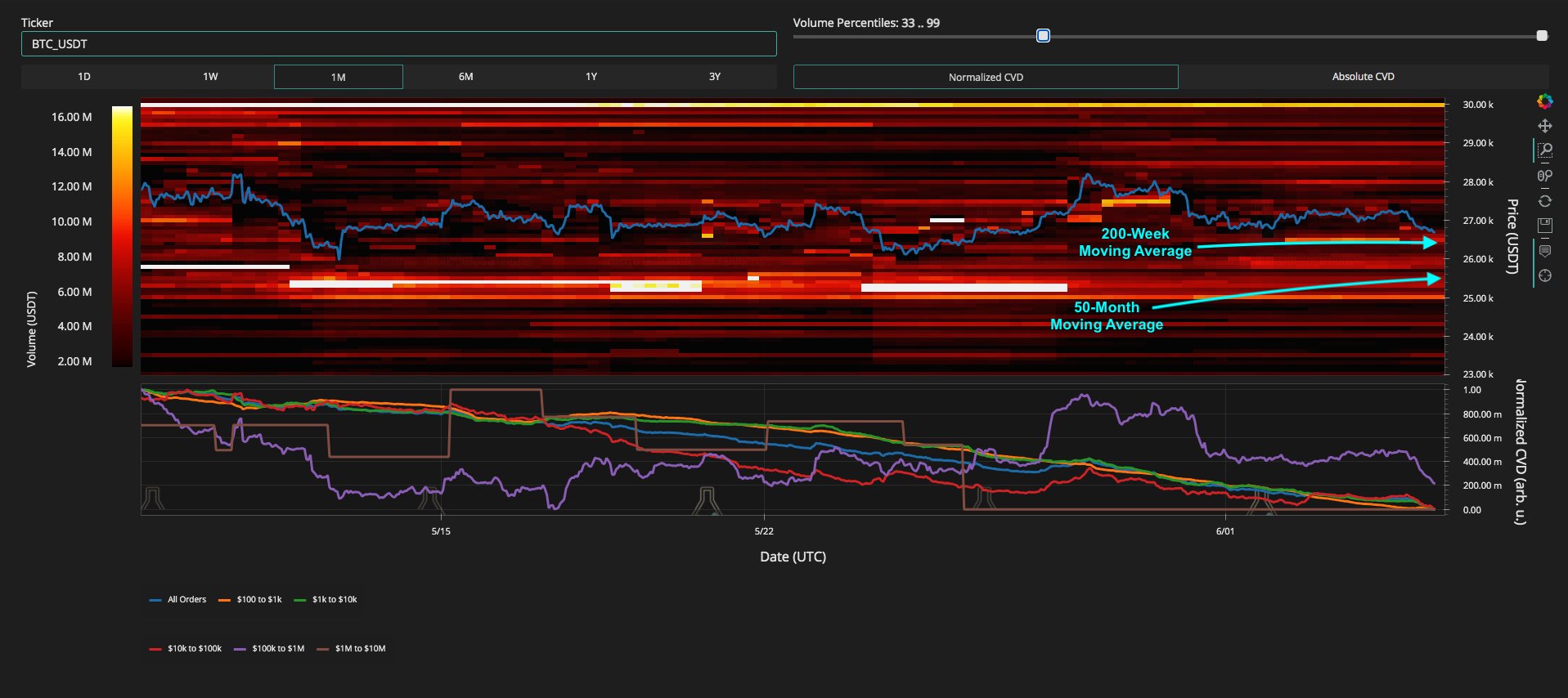 “IMO, a Weekly candle close below the 200-Week MA would be an indication that the bottom isn’t in yet. Things could get spicy this week. The last line of defense is at the 50-Month MA around $25.5k.”
