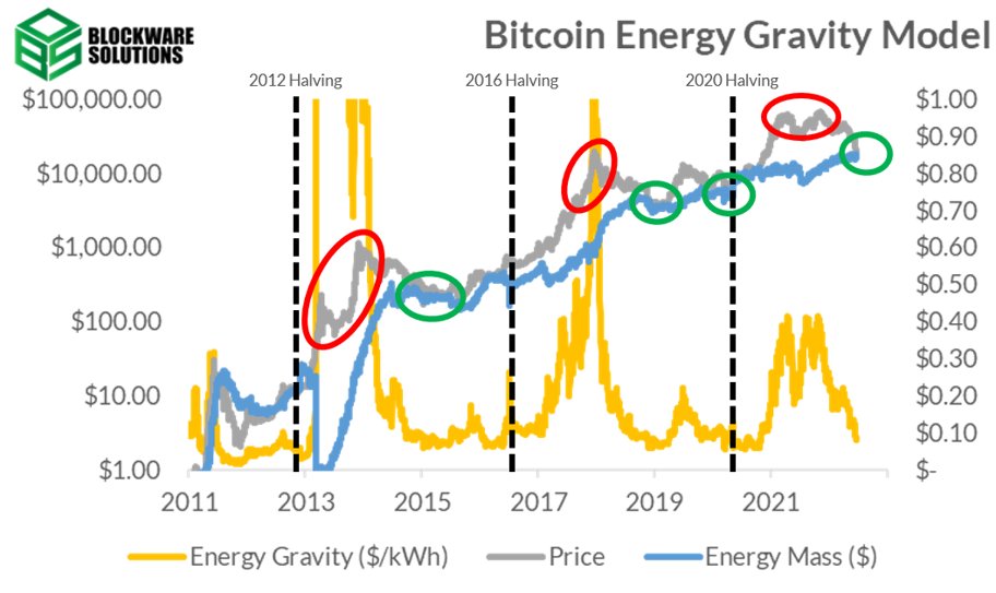 “Bitcoin Energy Gravity is the maximum USD price ($ / kWh) modern mining rigs are willing to buy electricity at to make a profit. ie: breakeven electricity rate,” the model’s creator, BlockWare analyst Joe Burnett, explained in a Twitter thread.