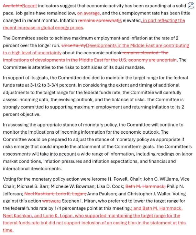 While the Fed maintains its goal of achieving “maximum employment and inflation at the rate of 2 percent over the longer run,” the FOMC minutes cited the “developments in the Middle East” as factors fueling an environment of “uncertainty” and the Fed stressed its desire to maintain optionality as it evaluates the “risks to both sides of its dual mandate.”