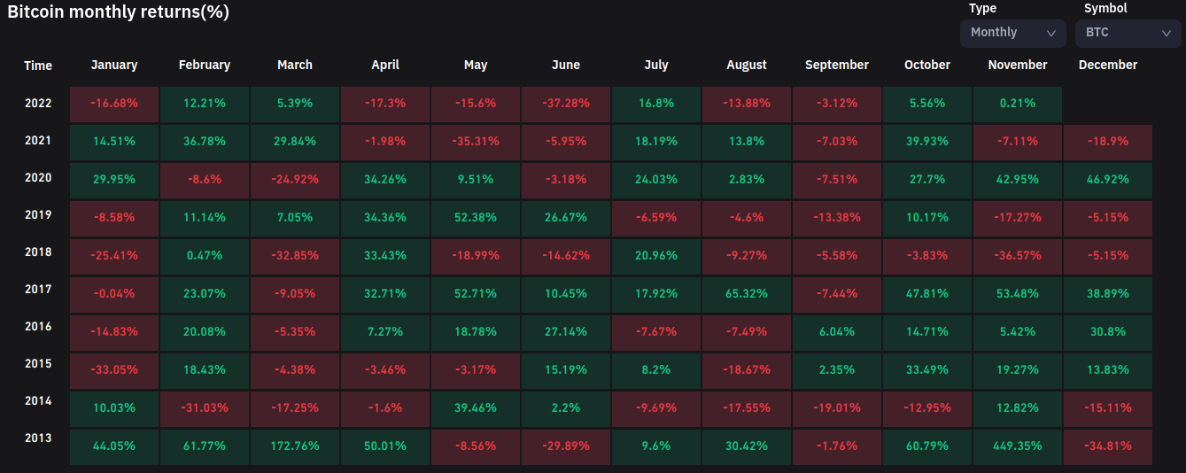 The monthly close had come in at around $20,500 for Bitcoin, this marking a modest increase over September and October gains of 5.6%, according to data from Coinglass.