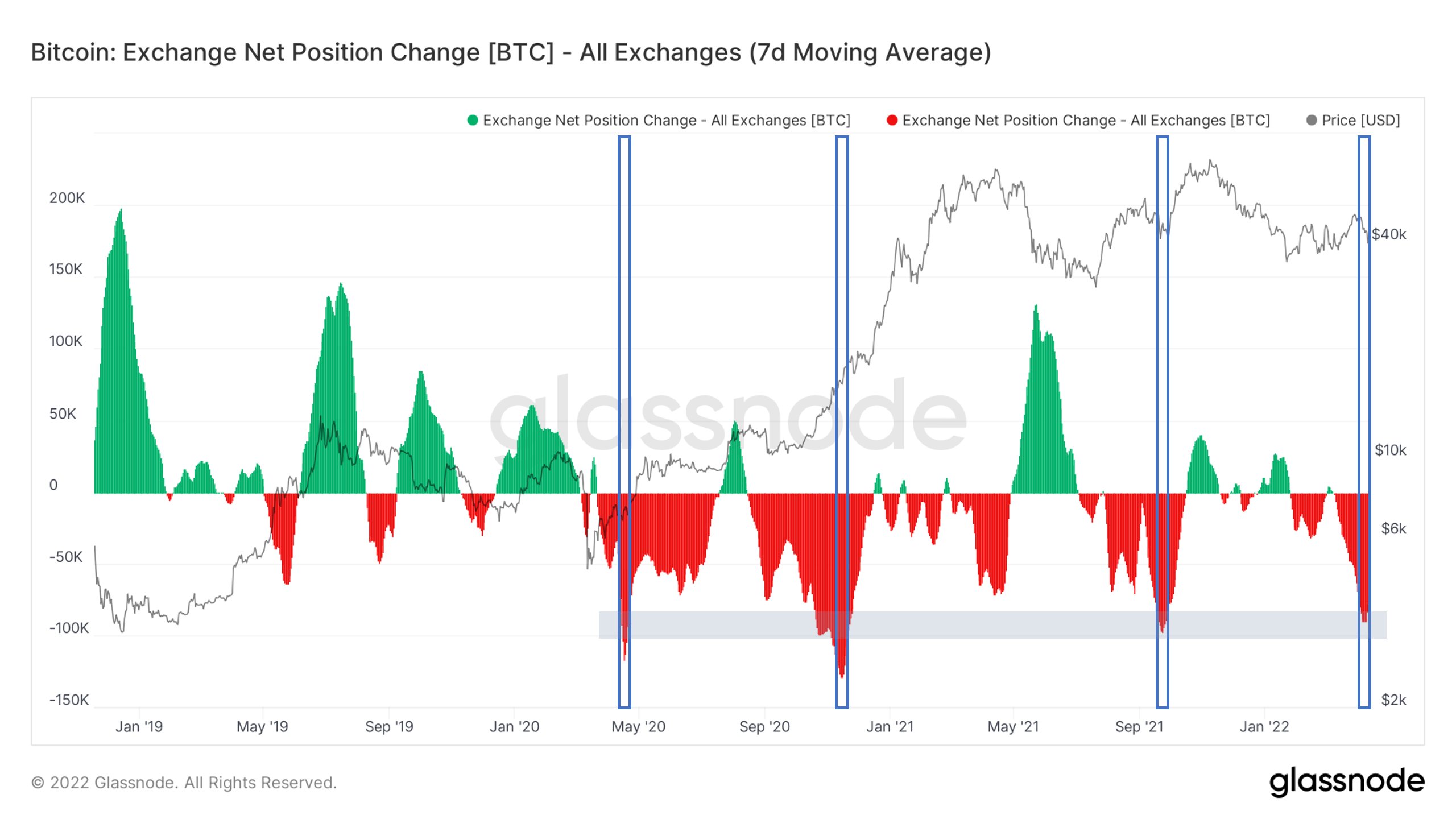 “On only 3 other occasions have we ever seen Bitcoin withdrawn from exchanges at this rate,” he wrote alongside data from on-chain analytics firm Glassnode.