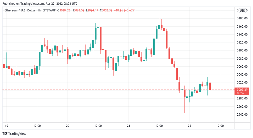Thursday’s rout meanwhile spelled additional pain for altcoins, with Ether (ETH) dropping under $3,000.