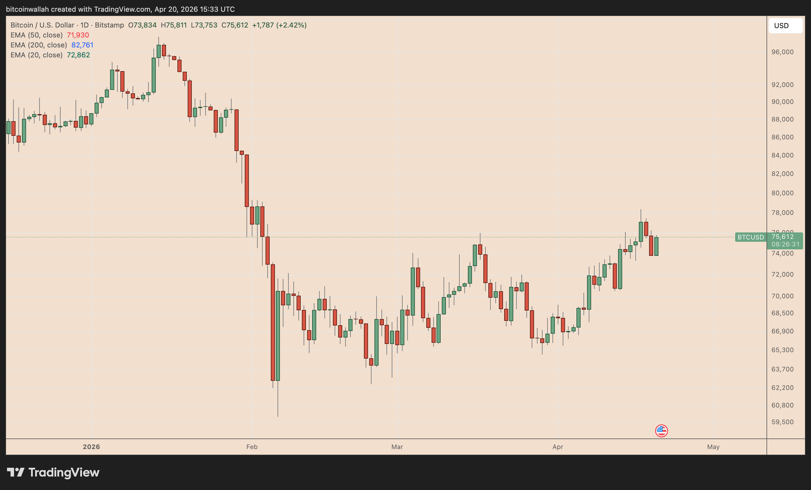 https://images.cointelegraph.com/images/528_aHR0cHM6Ly9zMy5jb2ludGVsZWdyYXBoLmNvbS91cGxvYWRzLzIwMjYtMDQvMDE5ZGFiOWEtZTFkOS03MDI5LWE2MWMtNDYyMTNiYTgzOTIxLmpwZw==.jpgBitcoin (BTC) rose 2.66% to around $75,800 on Monday after Strategy disclosed a $2.54 billion purchase, the company’s third biggest ever, and equivalent to about 2.5 months of new BTC supply.