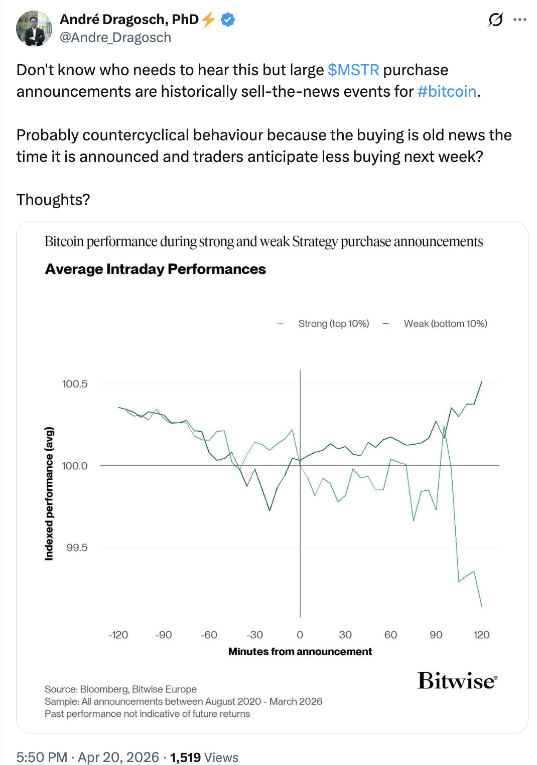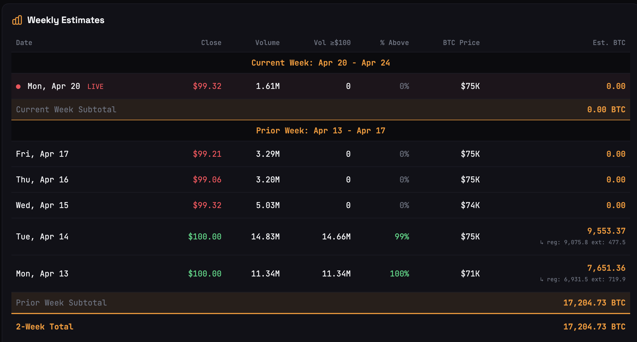 But STRC has been trading below its $100 par value since April 15, which may limit Strategy’s ability to keep raising cash to purchase more Bitcoin this week.