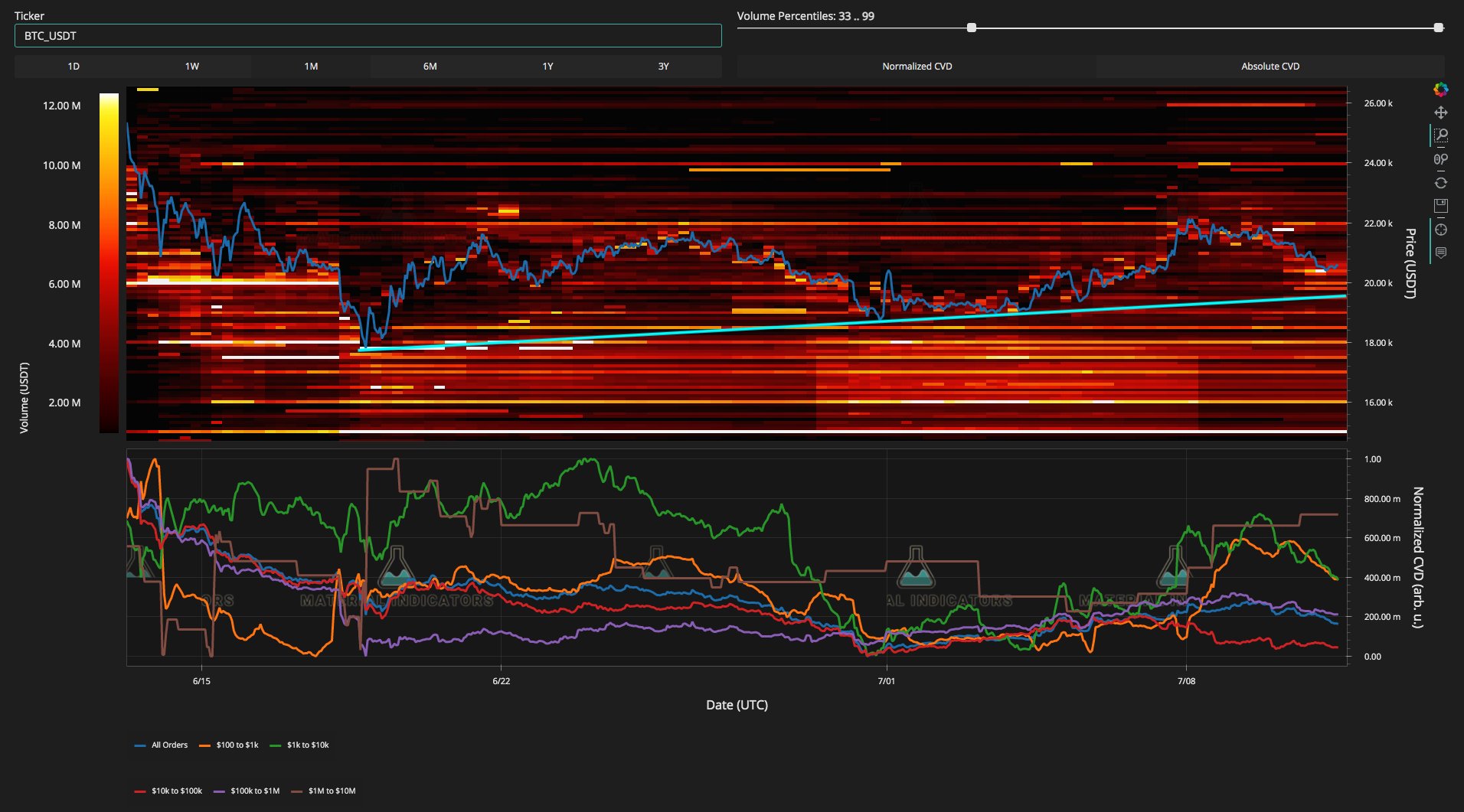 For on-chain analytics resource Material Indicators, the level to watch was a trendline acting as support since June.