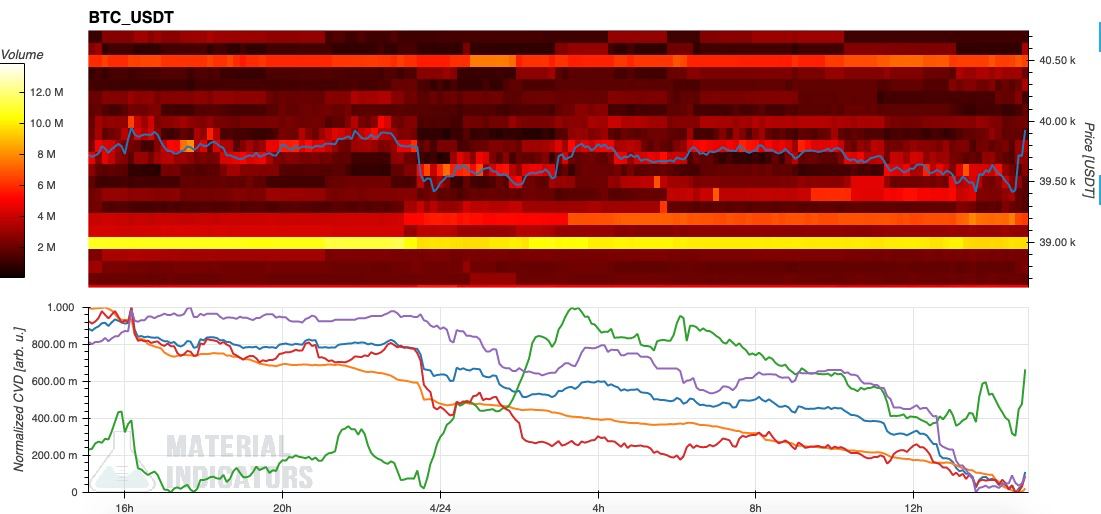 Data from on-chain monitoring resource Material Indicators meanwhile showed thinning bids below spot price, which nonetheless continued to retest $40,000 resistance.