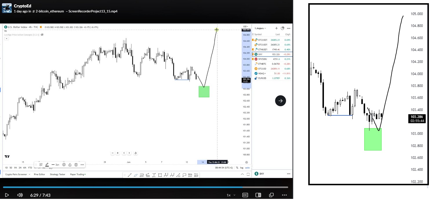 “DXY reached green box and bouncing a bit,” he commented alongside a chart of the U.S. dollar index (DXY).