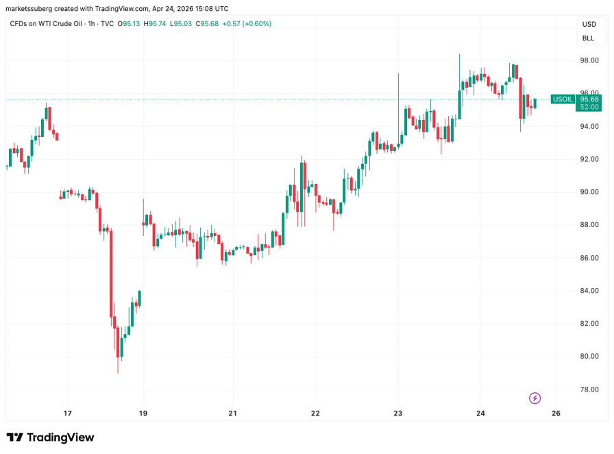 CFDs on WTI crude oil one-hour chart. Source: Cointelegraph/TradingView