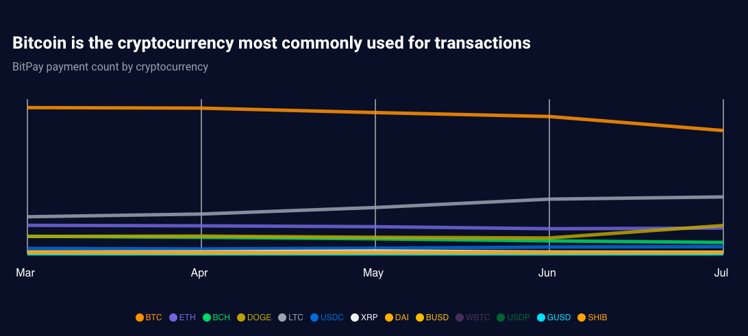 “People still use BTC on BitPay more than other cryptocurrencies because it is the oldest and most well-known crypto, it has the largest market cap, and it has proven over the years to be a great digital payment tool.”