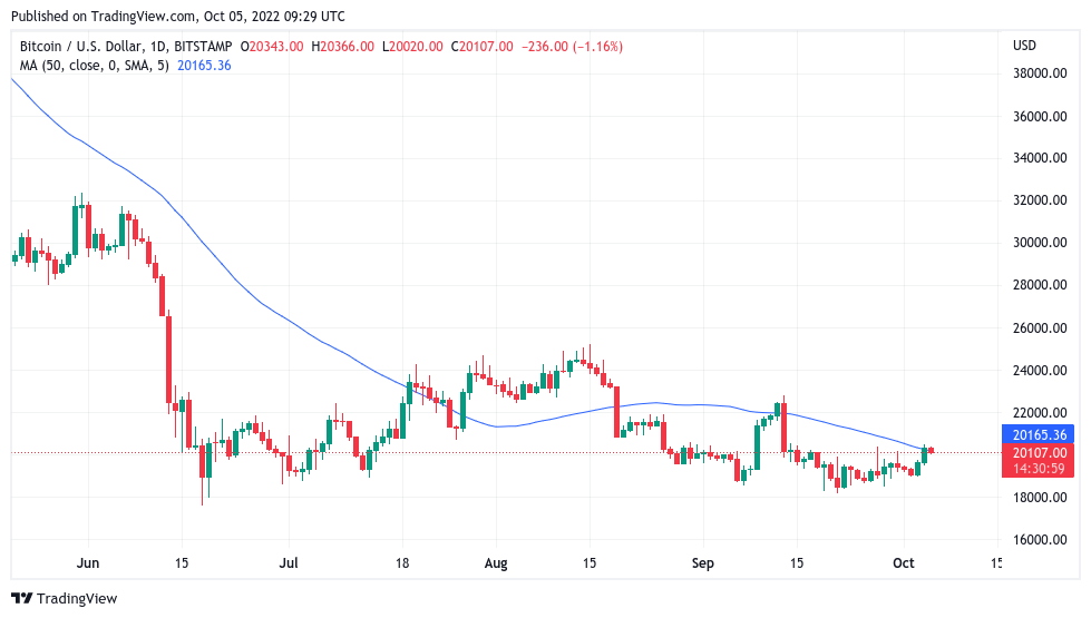 https://images.cointelegraph.com/images/840_aHR0cHM6Ly9zMy5jb2ludGVsZWdyYXBoLmNvbS91cGxvYWRzLzIwMjItMTAvYjliYWY1YmUtODQ0Yi00M2Y1LWEyN2YtNGRlYjcxMmM2ZDMwLmpwZw==.jpgBitcoin (BTC) held $20,000 into Oct. 5 with trader targets still including a fresh high before rejection.