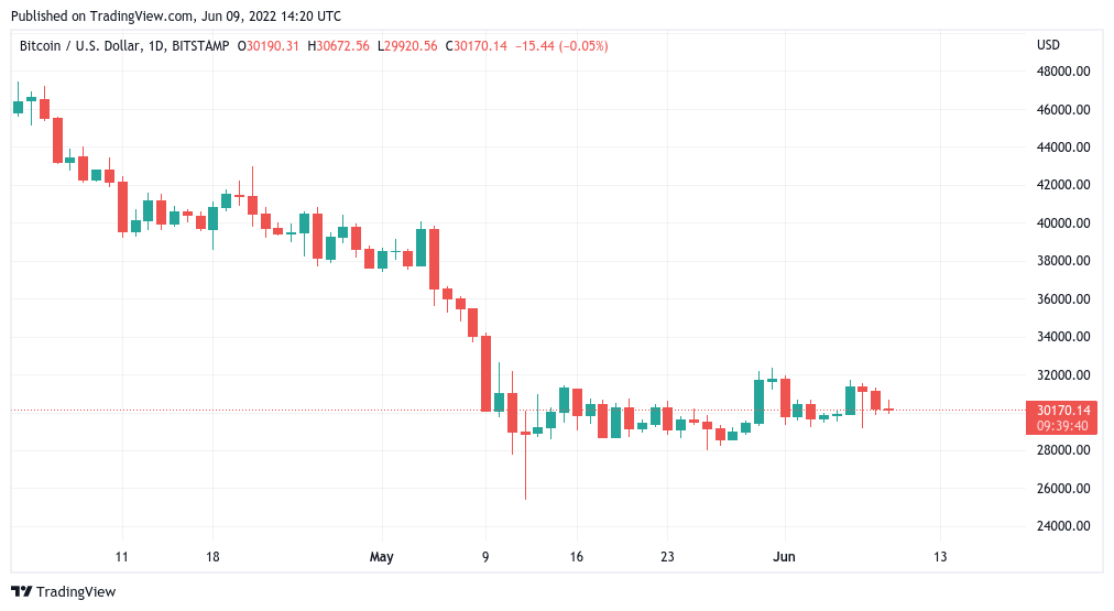 BTC/USD has focused on the $30,000 mark since May 9, its surrounding corridor broken only by the immediate aftermath of the Terra LUNA implosion.