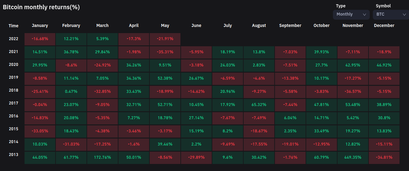 This would make May 2022 the second worst May in Bitcoin’s history, data from on-chain monitoring resource Coinglass confirmed.