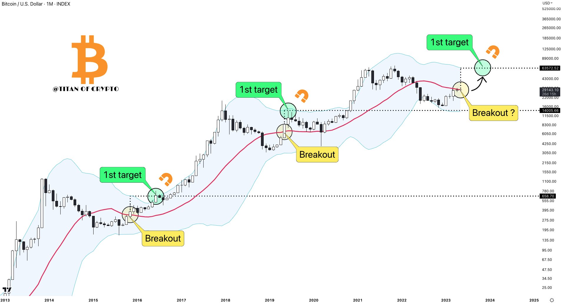 In a Twitter discussion on May 5, Titan of Crypto flagged a rare bull signal on the Bollinger Bands indicator for the Bitcoin monthly chart.