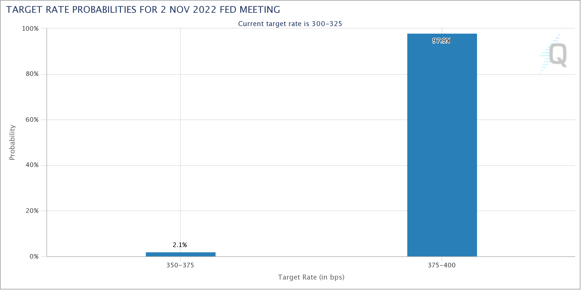 With the September Consumer Price Index (CPI) print released, sentiment was now overwhelmingly leaning toward the Federal Reserve enacting a further 75-basis-point rate hike in November.