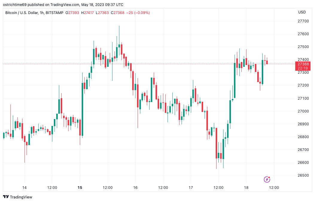 Data from Cointelegraph Markets Pro and TradingView followed BTC/USD as it circled $27,400 on Bitstamp.