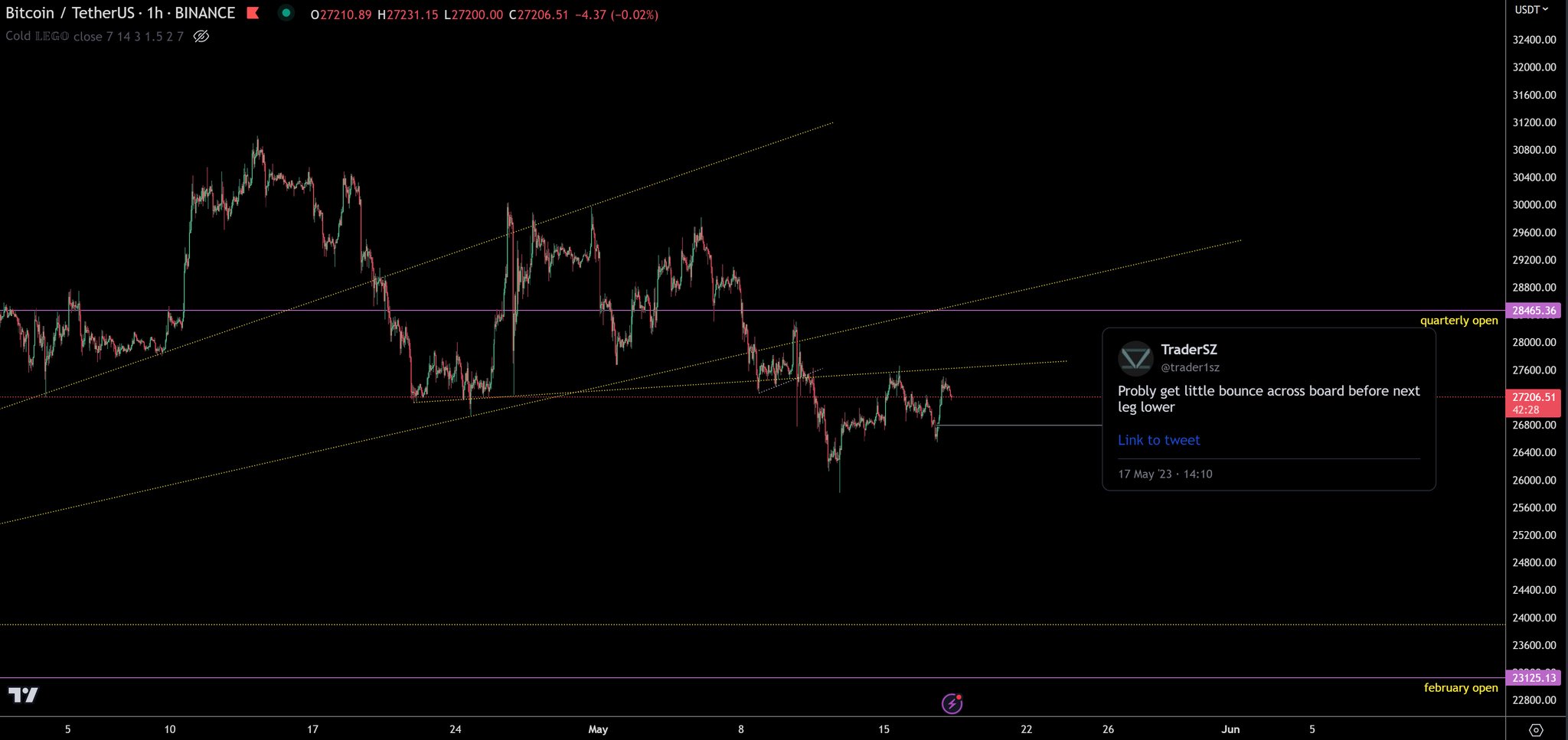 “How much longer till expansion and is the bottom in? 25k’s tested, liq below us taken, bottom for this correction MIGHT be in but need to see how PA develops over the coming days. While we can’t rule out a flush lower yet, developing PA will give us some clues to work with,” part of a tweet on the day explained.