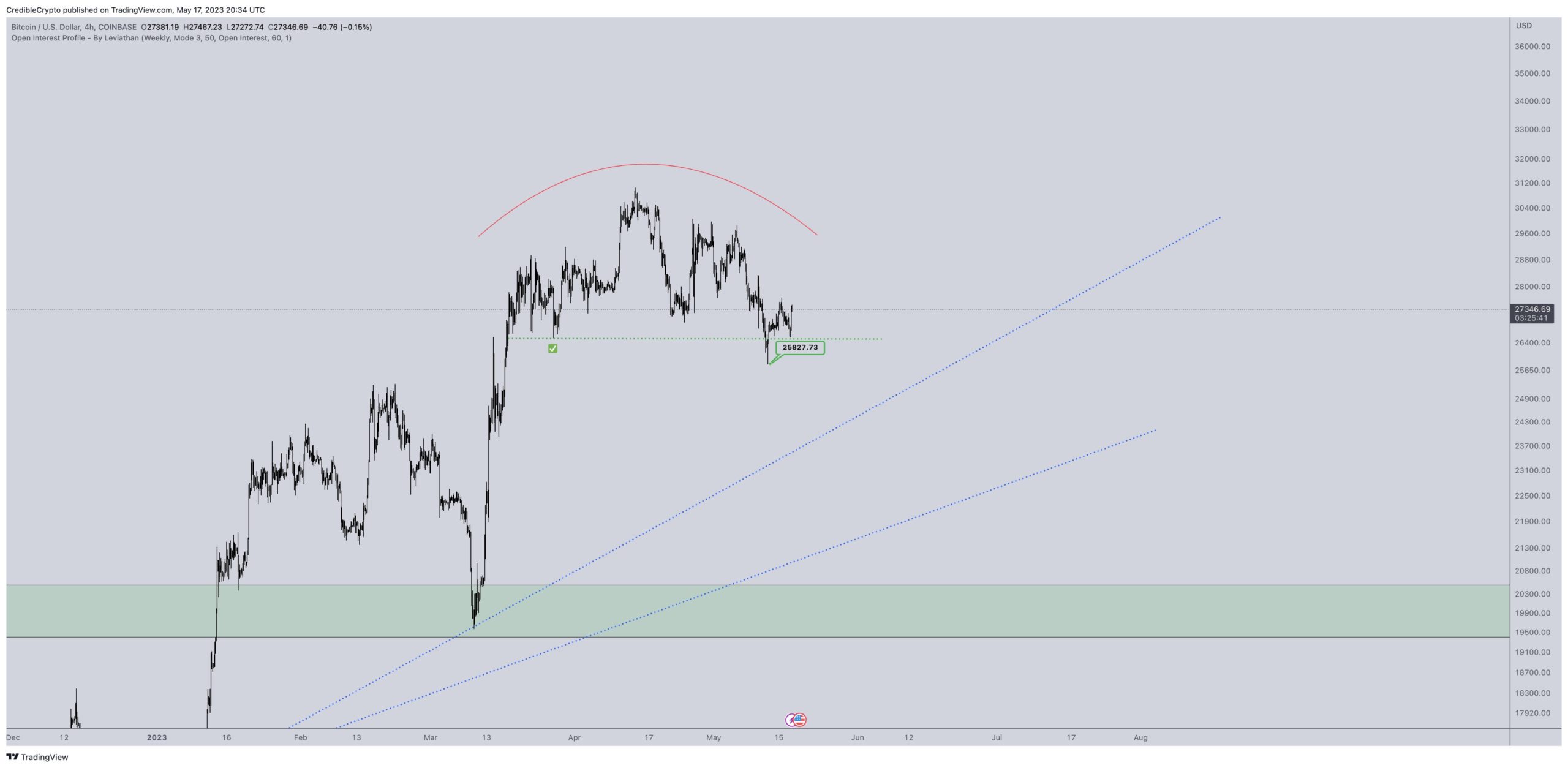 Zooming out, meanwhile, fellow trader Credible Crypto revealed a belief that a more pronounced return to the upside could come within the next month.