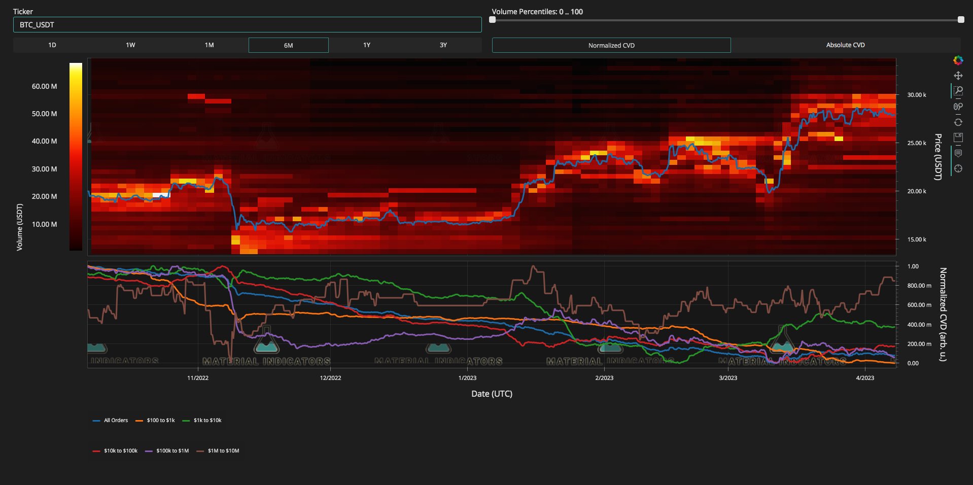 Material Indicators added that liquidity reflects sentiment, having previously emphasized that such liquidity moves are apt to “dampen” price volatility.