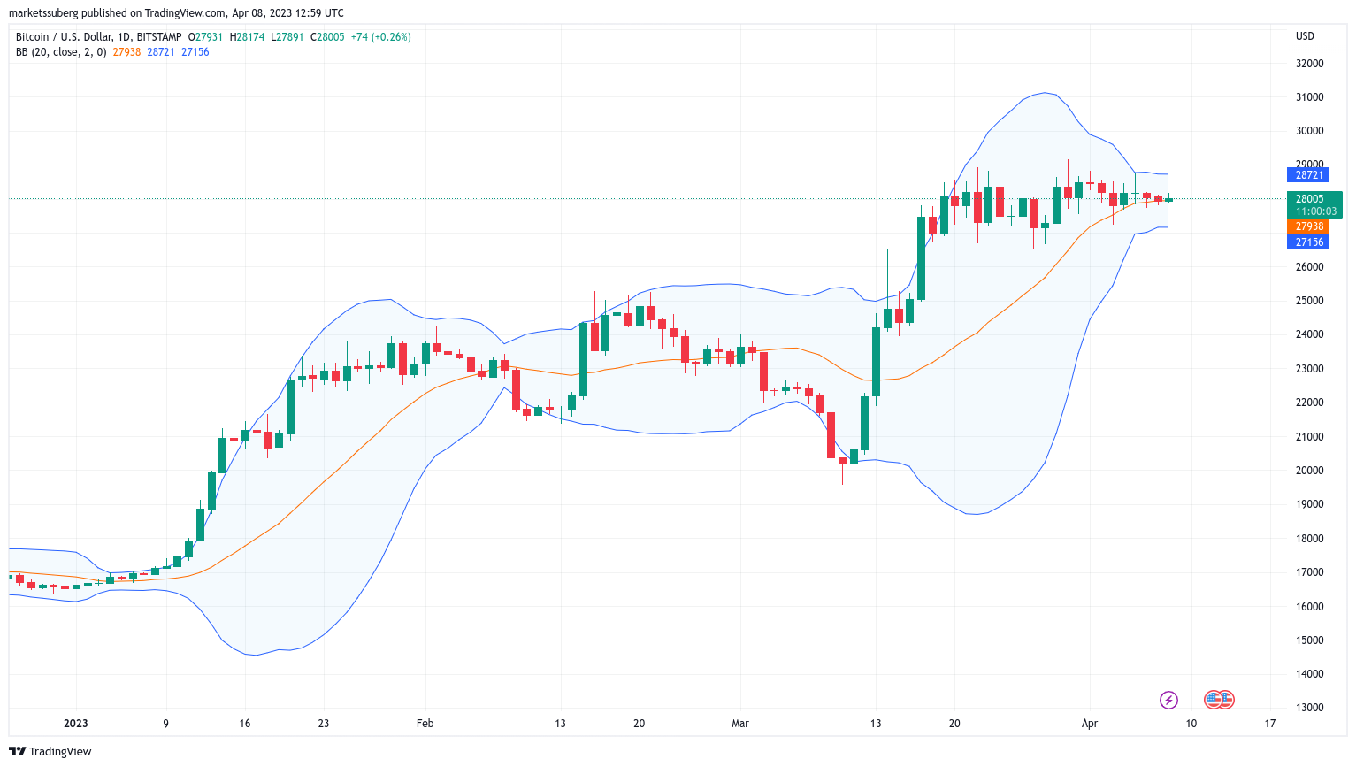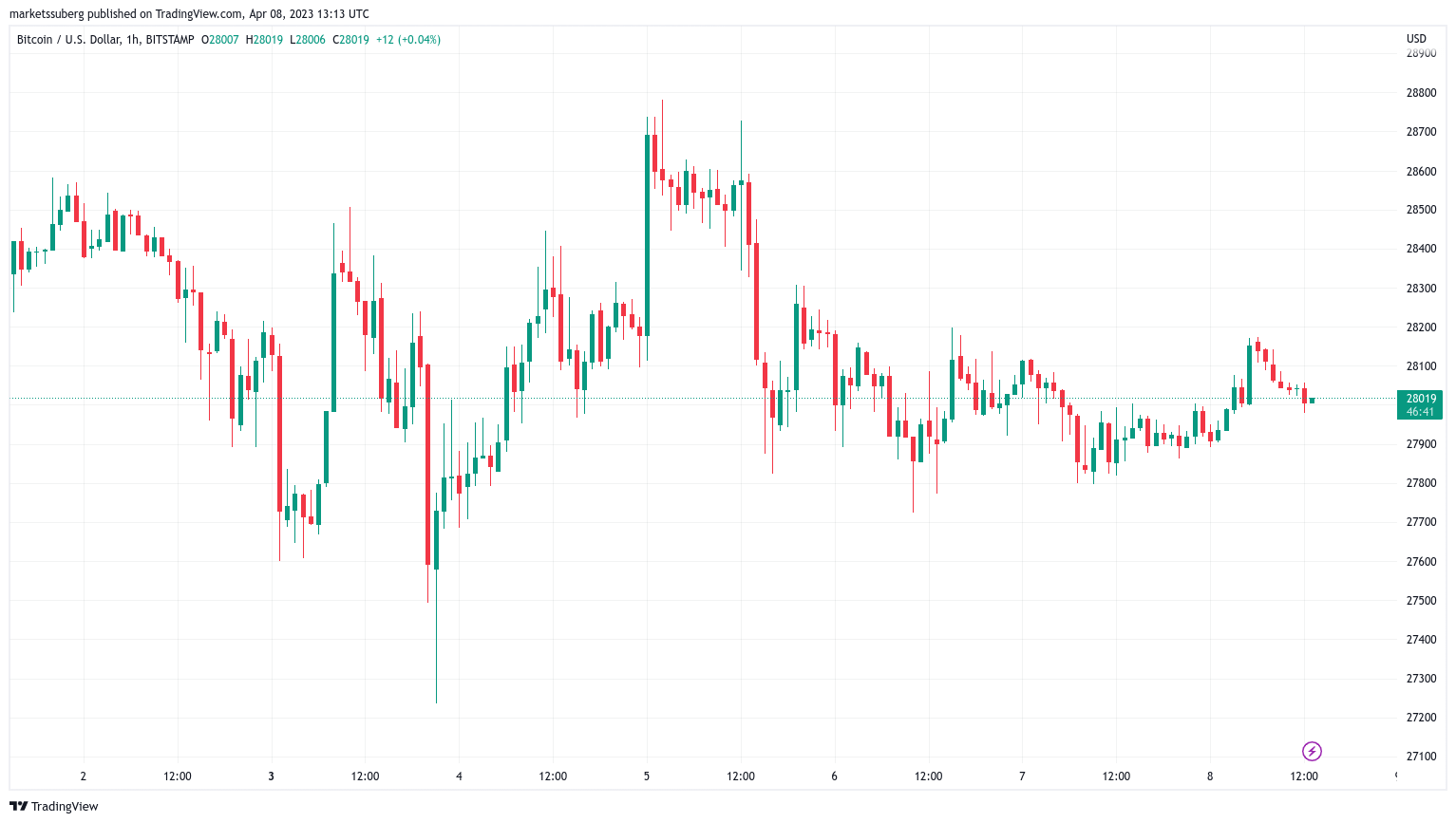 Data from Cointelegraph Markets Pro and TradingView showed BTC/USD hovering near $28,000 on Bitstamp.