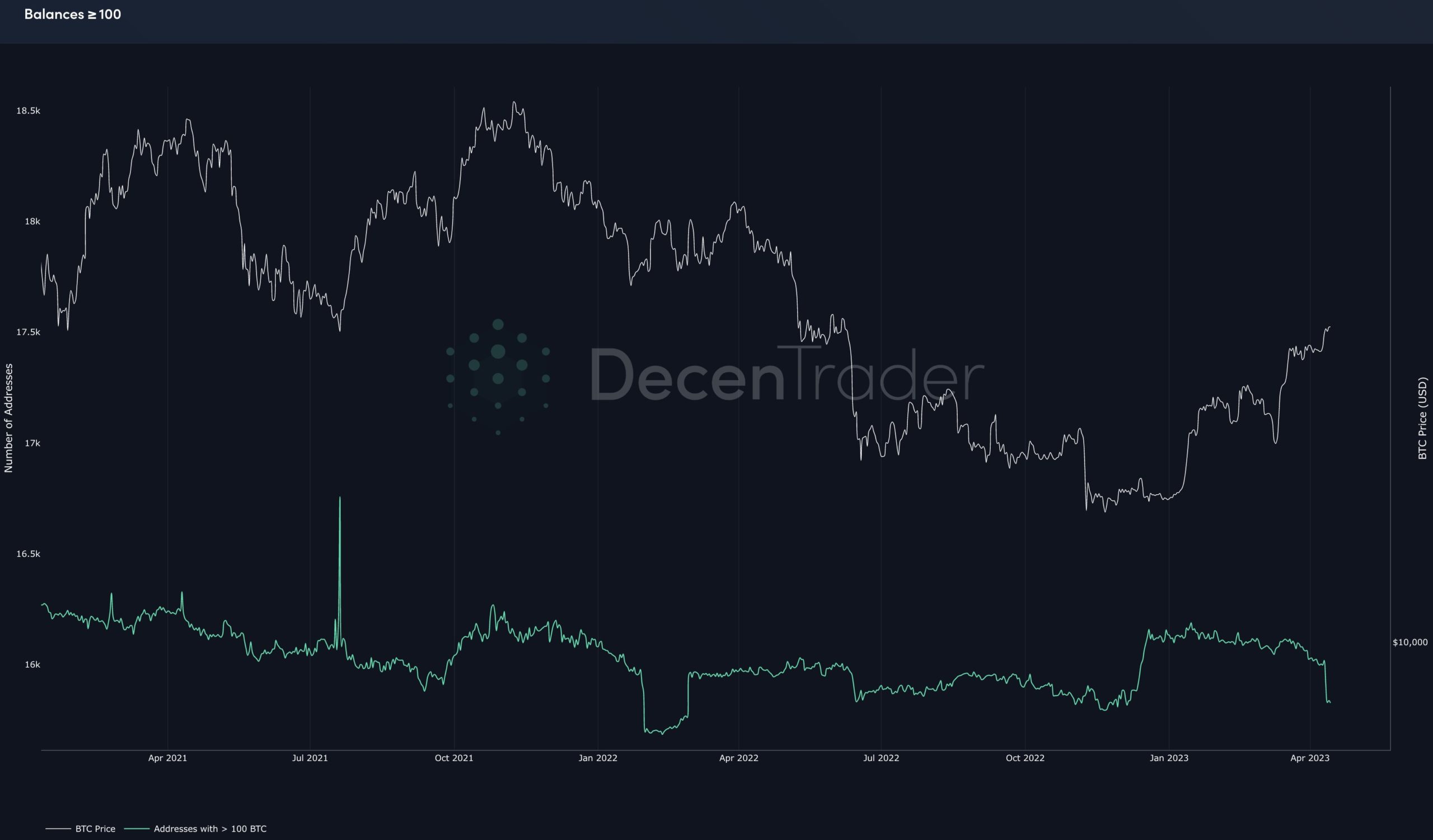 “Wallets holding >100btc saw a very significant drop of 200, virtually overnight. The increase we saw in December has now been reversed entirely.”