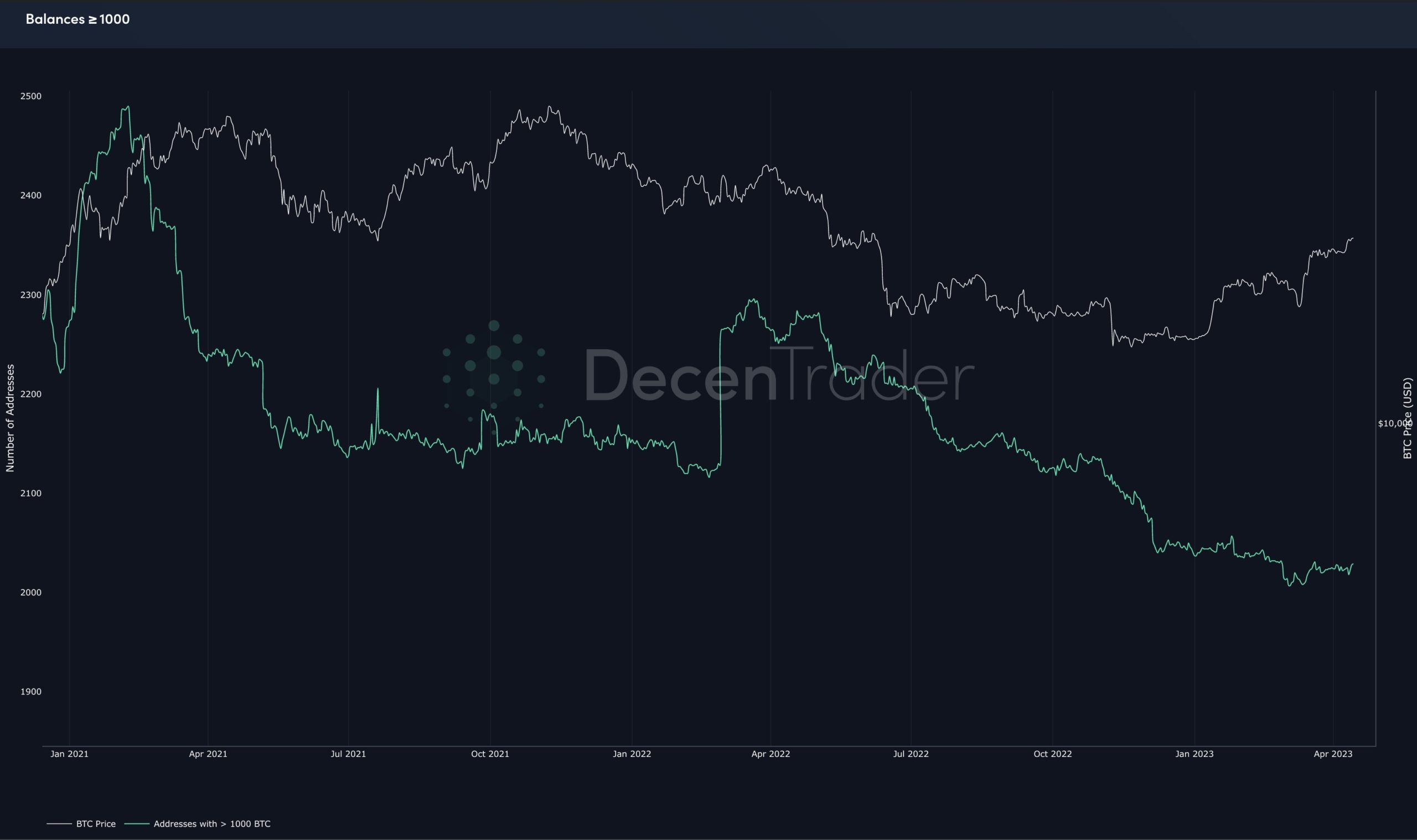 Trading suite Decentrader nonetheless struck a more cautionary tone as it revealed large-balance wallet numbers declining.