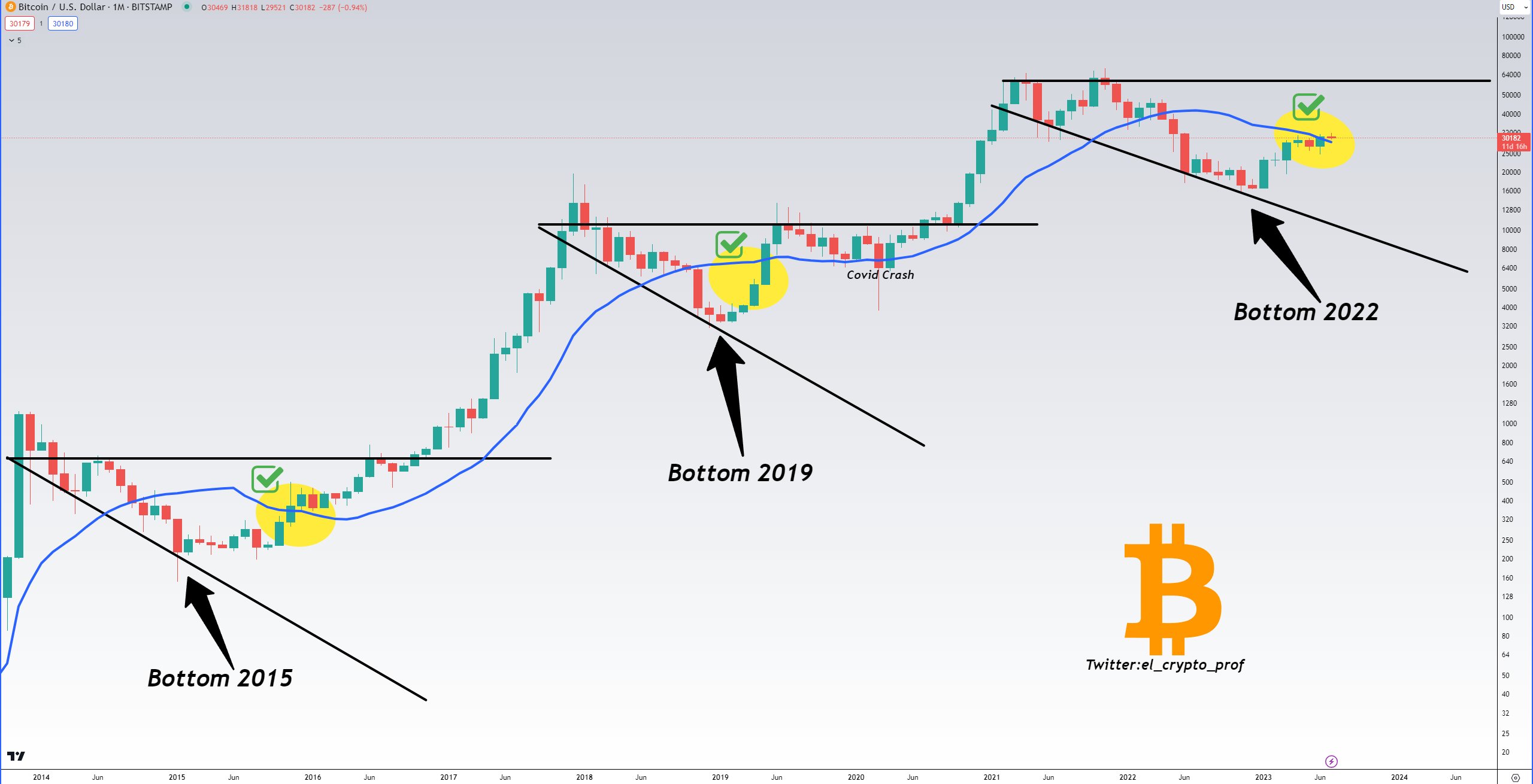 “Once Bitcoin has closed above it, it has NEVER AGAIN fallen below it, until the cycle top. This is exactly how it was in 2016-2018 and 2019-2021.”