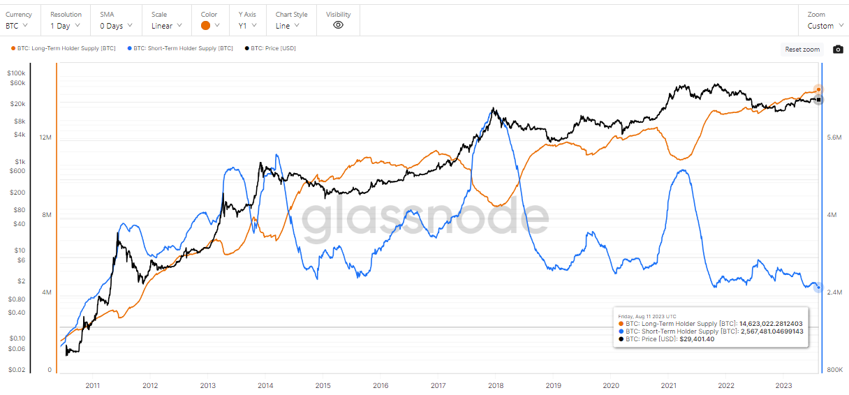 To, že ponuka držaná dlhodobými držiteľmi BTC prekonáva stále historické maximum, je realitou odkedy bitcoin vznikol. V čase písania článku vlastnia dlhodobí držitelia až 14 623 022 BTC, čo predstavuje až 75,16 % z cirkulujúcej ponuky a 69,63 % z celkovej ponuky 21 miliónov mincí. V čase písania článku sa podľa údajov CoinMarketCap vyťažilo 19 454 675 BTC.