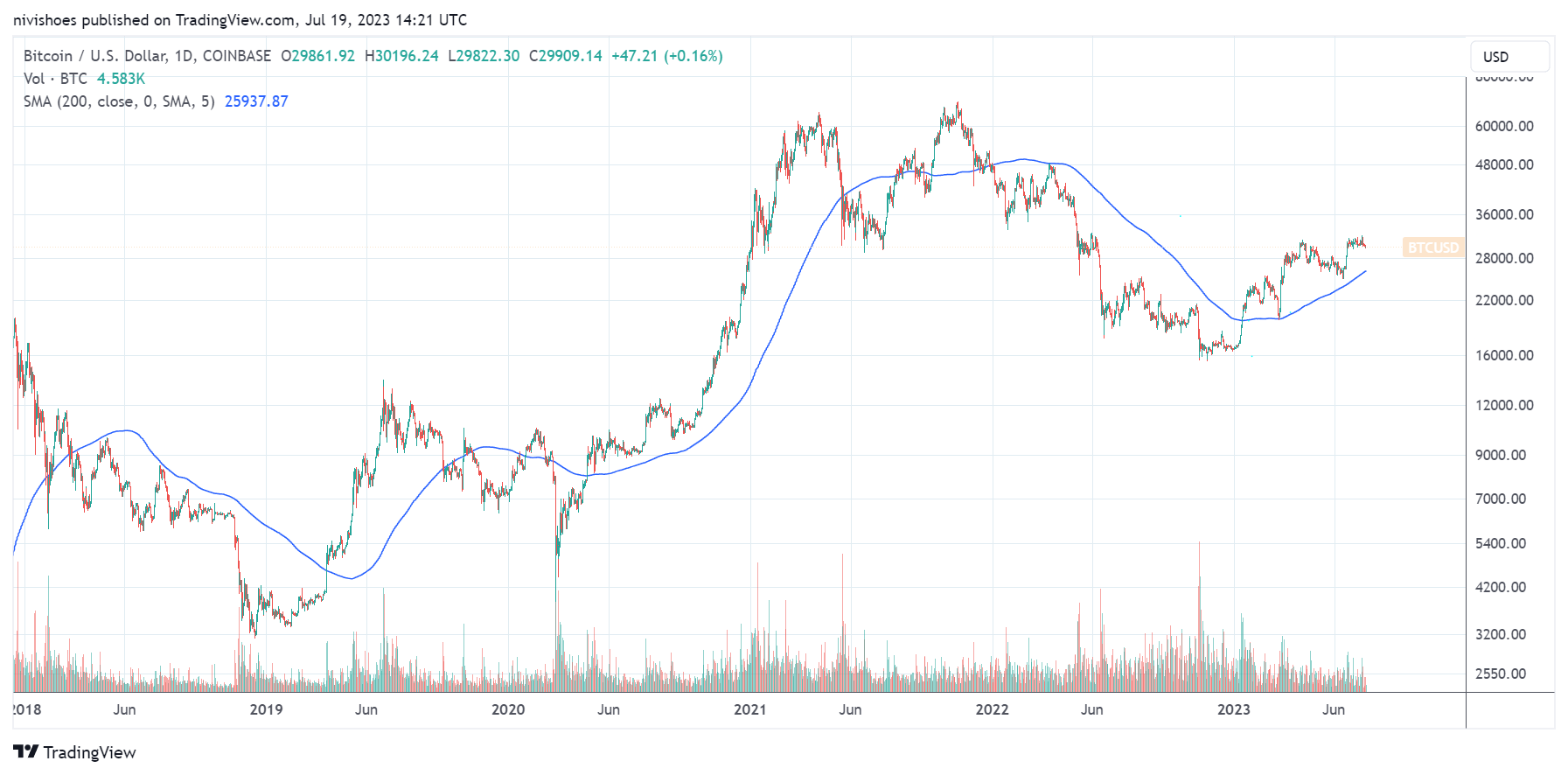 Technically, the BTC/USD pair turned long-term bullish with its breakout above the 200-day moving average in January 2023.