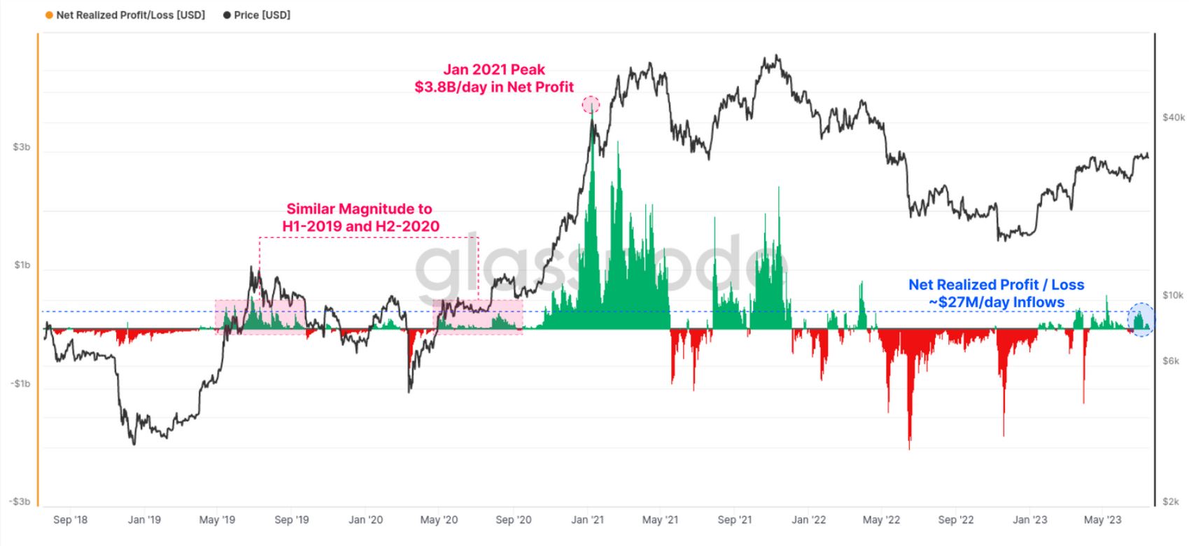 Glassnode’s analyst wrote, “this reflects the first sustained profit regime since April 2022” which is “similar in scale to both the first half of 2019, and also late 2020.”