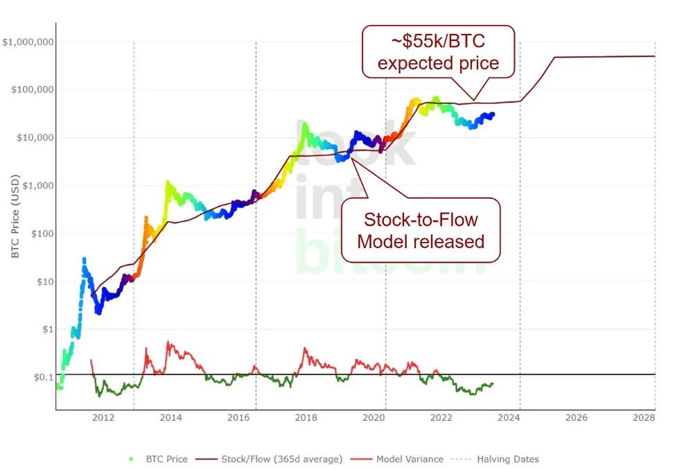 Given Bitcoin’s price is set for another supply shock at the next halving in April 2024, the S2F model shows that the price will likely surge after the event. Still, Myers wrote the price usually follows a “much less sexy version of the stock-to-flow model.”