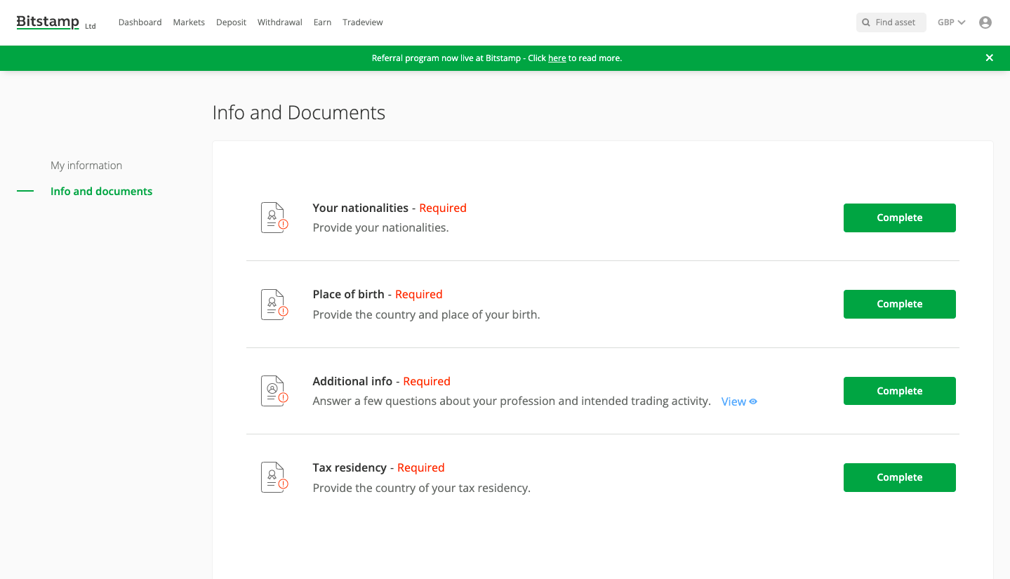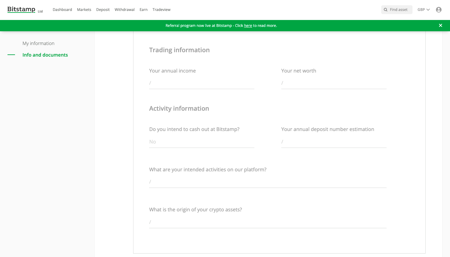 The exchange now also requires its customers to provide some legal info like nationality, place of birth and tax residency. Additionally, the exchange requested info like the annual income and net worth, intended activities on the platform, annual deposit estimation as well as the source of assets.